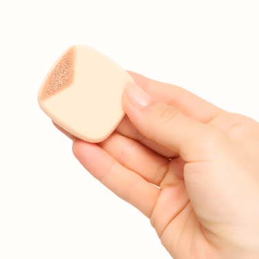 化粧下地で肌を整えた後、専用のスポンジでファンデーションの表面を軽くなでるように少量とります。