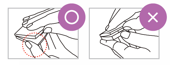 ○スポンジを三角に折りごく少量を取る。垂直に少しずつトントン叩き込む