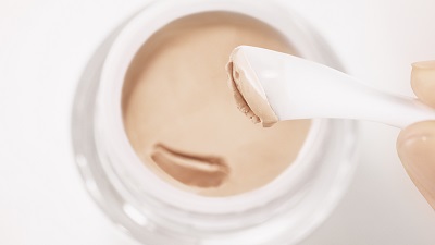 1. スパチュラにファンデーションを適量取ります。