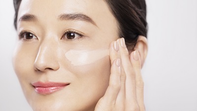 3. 顔の中心から外側に向かって引き上げるように伸ばした後、額までなじませます。