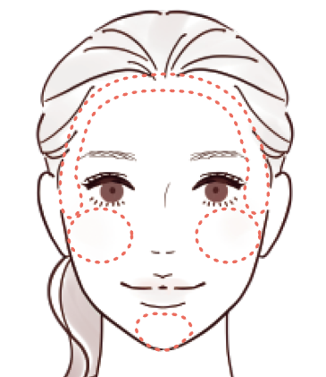 頬だけにつけるよりも、明るさ、ツヤ、血色が広がり、より肌全体を美しく見せることができます。