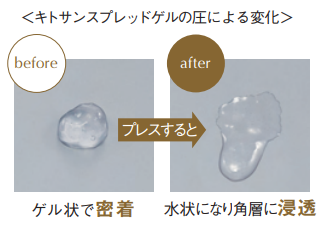 独自成分「キトサン*2スプレッドゲル」が圧をかけることで弾けてさらに浸透。さらに肌に留まることで肌内部*1の潤いをキープ。肌の水分量をアップし、乾燥を防ぎます
