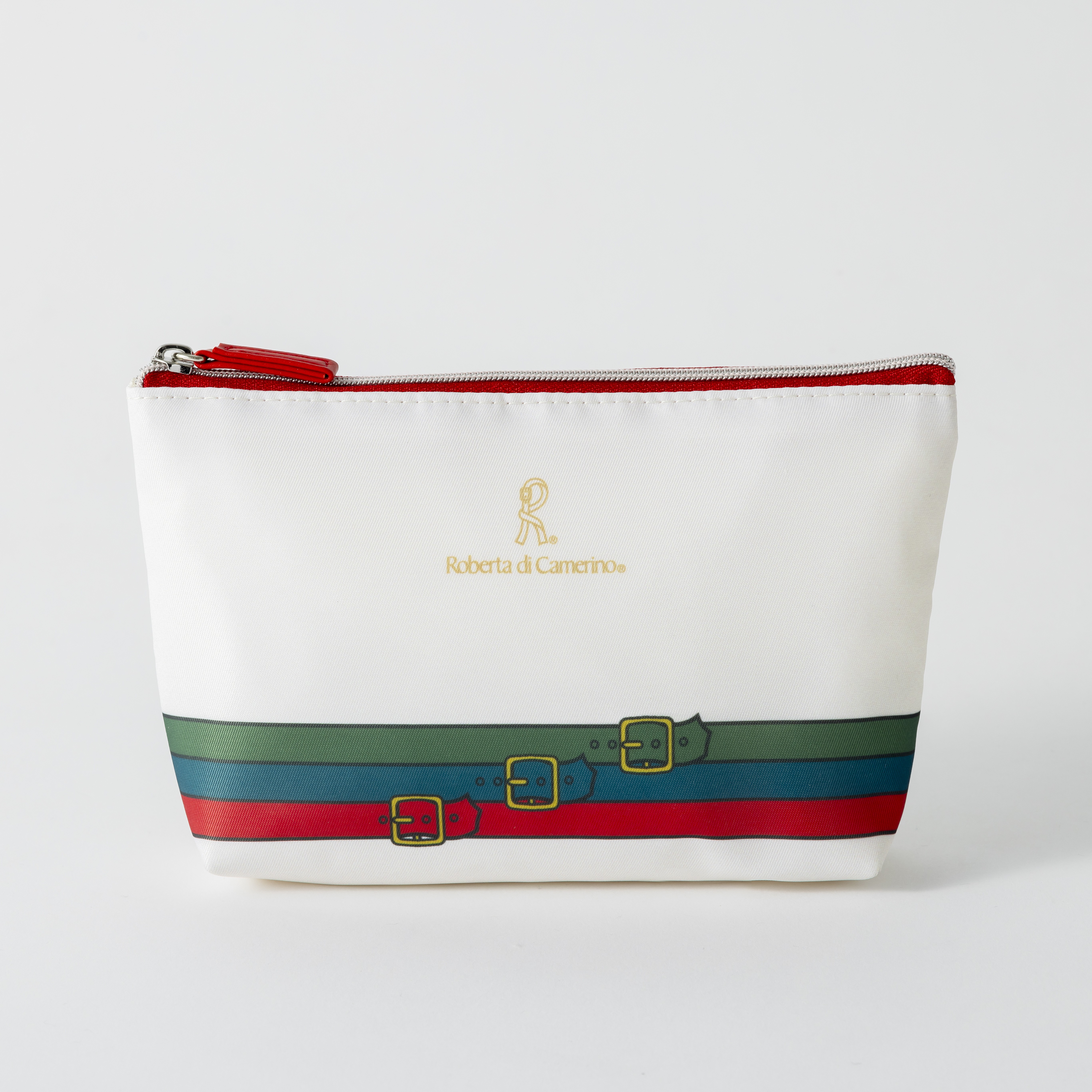 ベルトのトロンプルイユをあしらったポーチは、小物の整理やトートバッグの収納としても使えます。